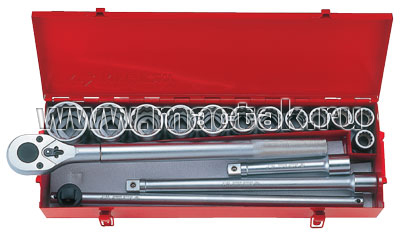 Комплект торцевых головок с принадлежностями 12 гр. 21-50 мм - 16 предметов - Металлический футляр 537x177x78 мм - Двенадцатигранные головки