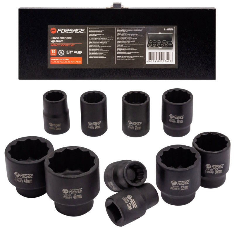 Головки ударные, набор 10пр., 3/4" (12гр.) Forsage F-6109MPB купить в Нижнем Новгороде цена ✅ - Все для СТО