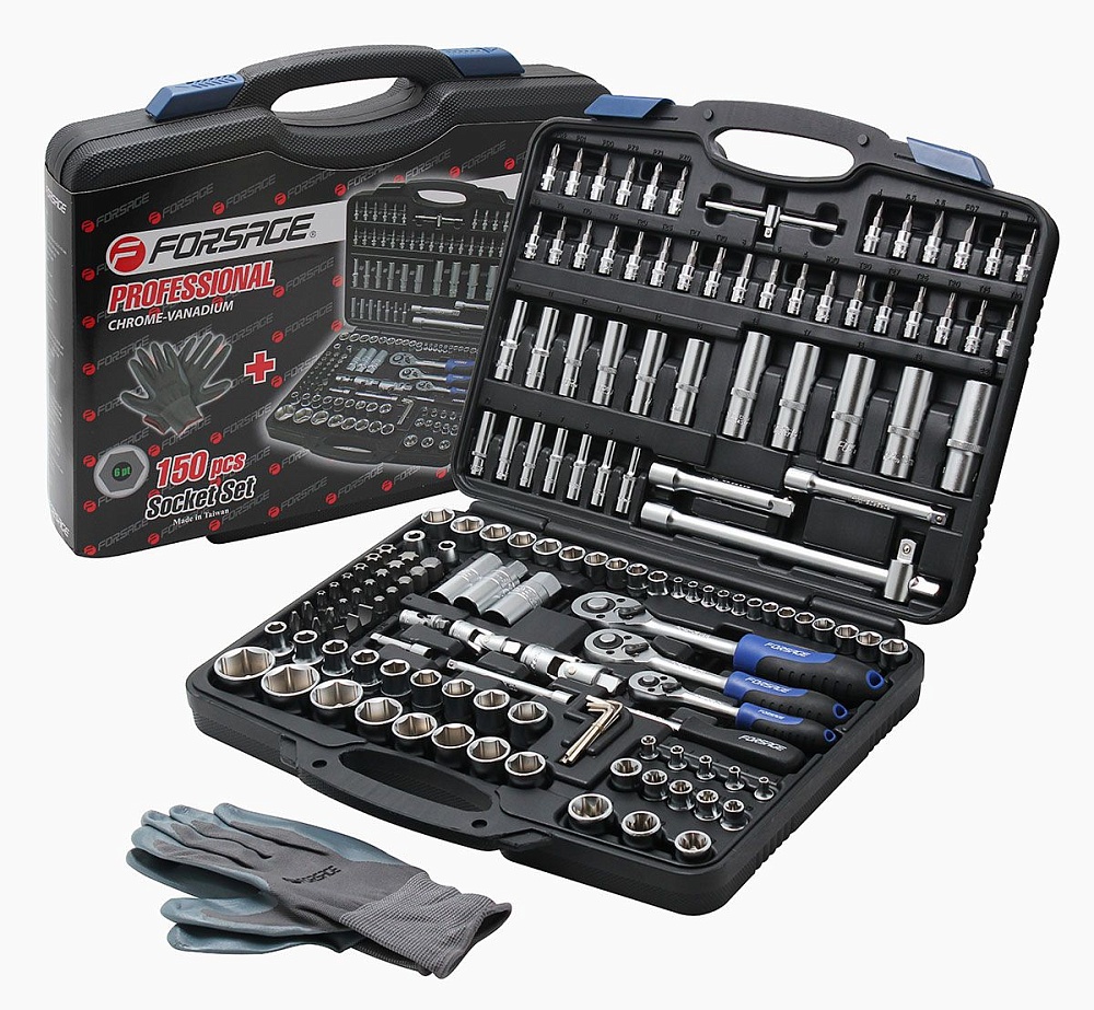 Набор инструмента универсальный FORSAGE 150пр. 1/4'',3/8'',1/2''(6-гр.)(4-32мм):