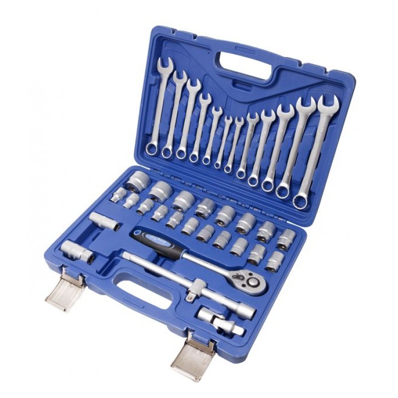 Универсальный набор 1/2" состоящий из 37 предметов. Предназначен для использования в домашних условиях и других целях.