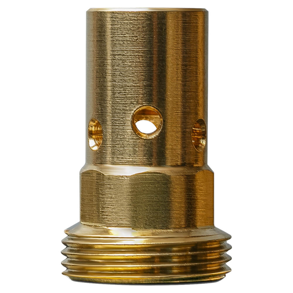 Вставка под наконечник M8 для горелок MIG устанавливается на гусак полуавтоматической горелки и служит для фиксации сварочного наконечника. Товар изготовлен из латуни.