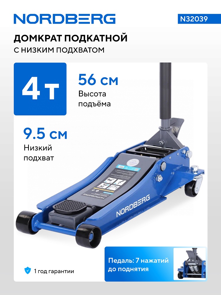 Домкрат подкатной 4 т, низкий подхват, педаль NORDBERG N32039 купить в Нижнем Новгороде цена ✅ - Все для СТО
