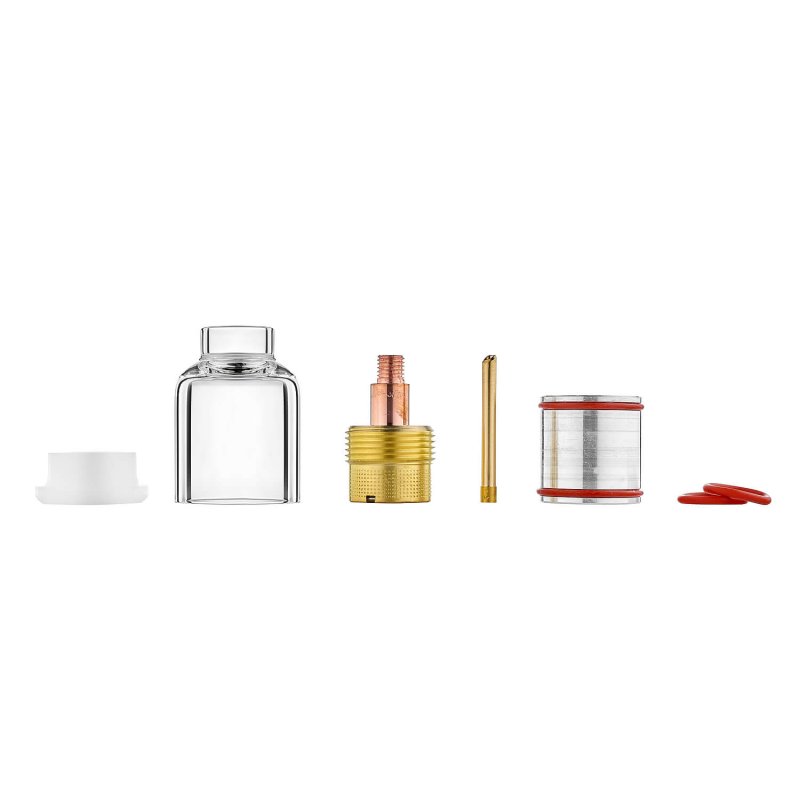 Набор CRYSTAL №4 совместим с горелками TIG TP 9/20/25. Прозрачное сопло выполнено из термостойкого стекла, что гарантирует хороший обзор во время сварочного процесса. Набор предназначен для работы с вольфрамовыми электродами диаметром 2,4 мм.