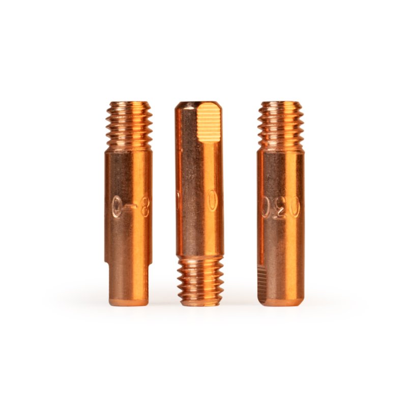 Наконечник – расходная часть MIG/MAG горелки, которая обеспечивает токосъём в процессе сварки, поэтому наконечники, так же называют контактными. Кроме того, через наконечник в процессе сварки подаётся проволока. Для оптимальной работы и идеального контакта необходимо, чтобы диаметр отверстия наконечника и сечение проволоки – совпадали.