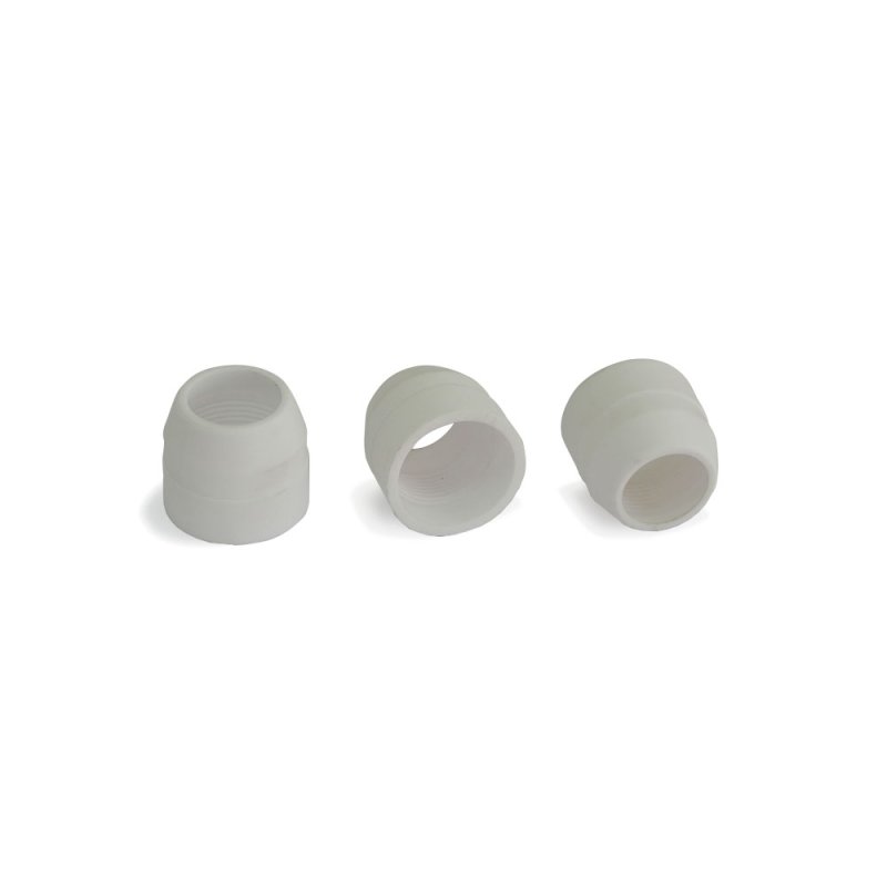 Насадка защитная SG-55 выполнена из керамики и защищает сопло плазменного резака от непреднамеренного замыкания с металлом, а также, от расплавленных брызг металла, которые могут попасть на сопло во время реза.