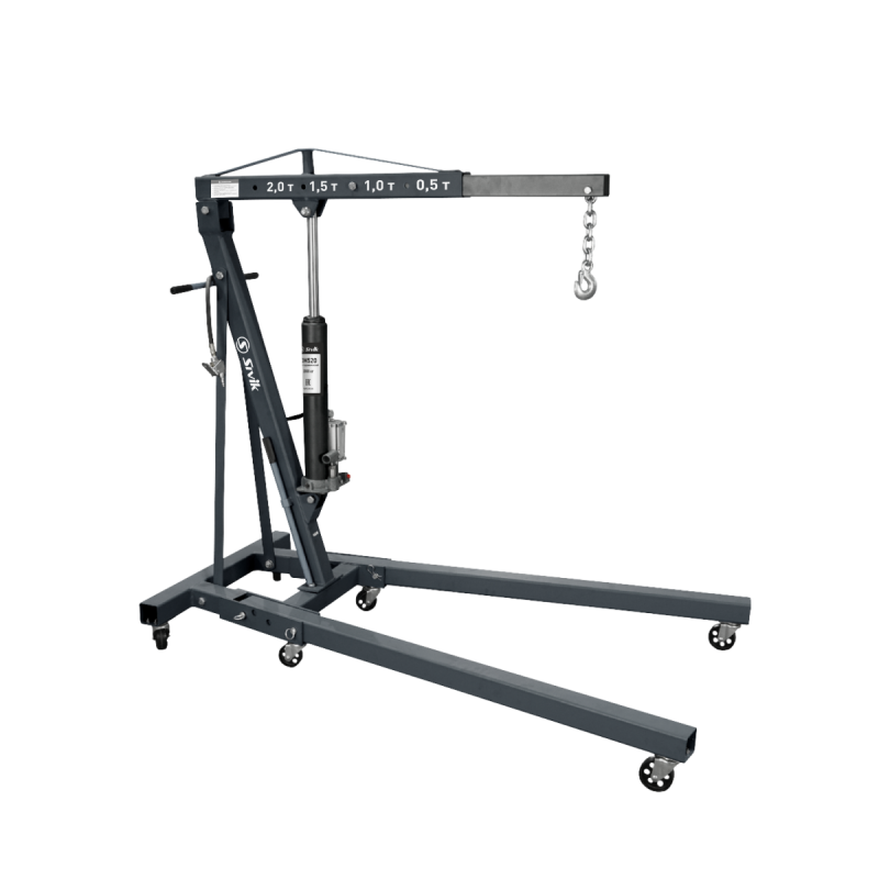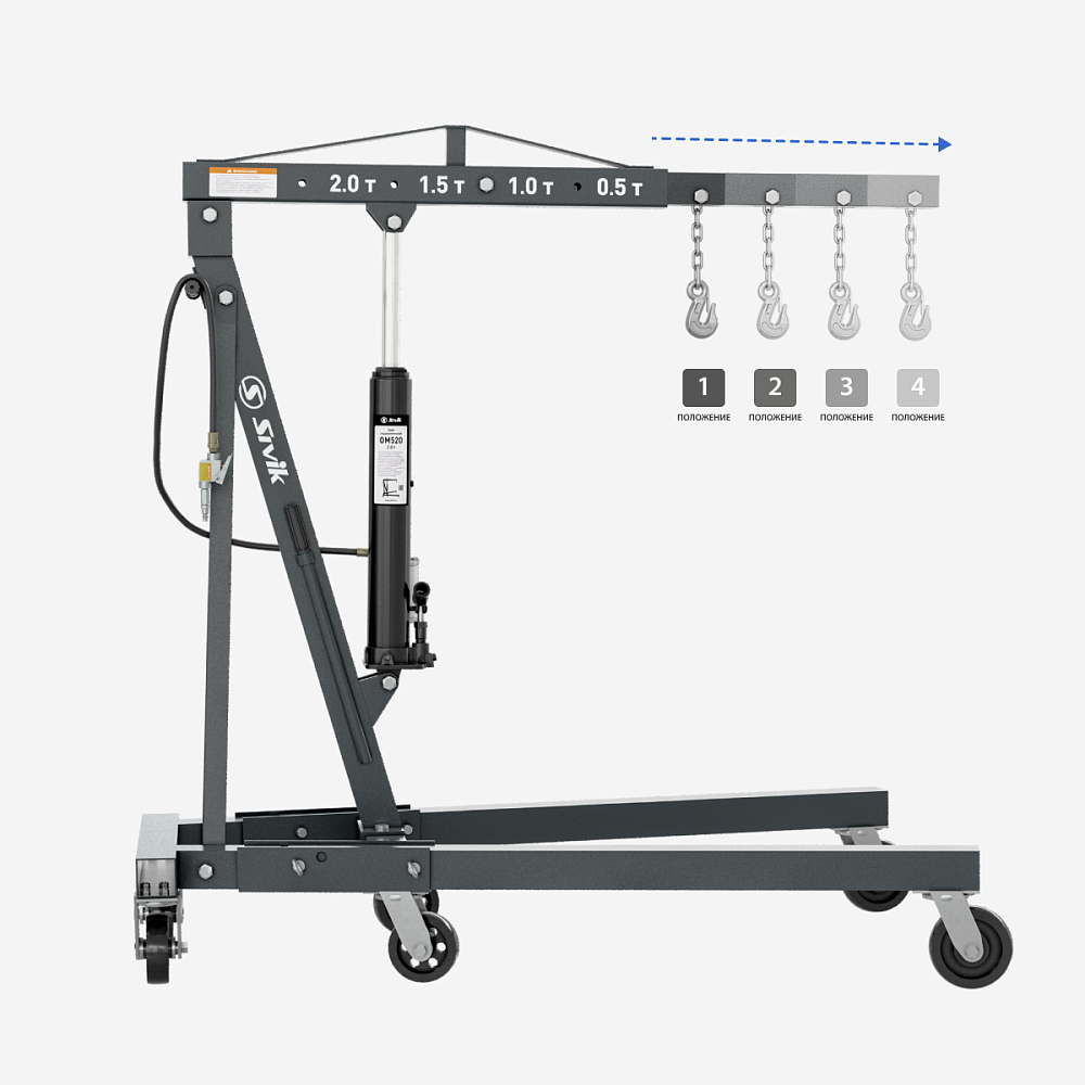 • Регулируемая по углу наклона стрела крана позволяет извлекать двигатель и другие агрегаты автомобиля без особых усилий