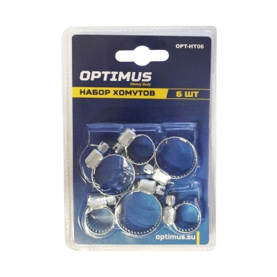 OPT-HT06 Хомуты червячные набор 6шт. 10-27 OPTIMUS купить в Нижнем Новгороде цена ✅ - Все для СТО