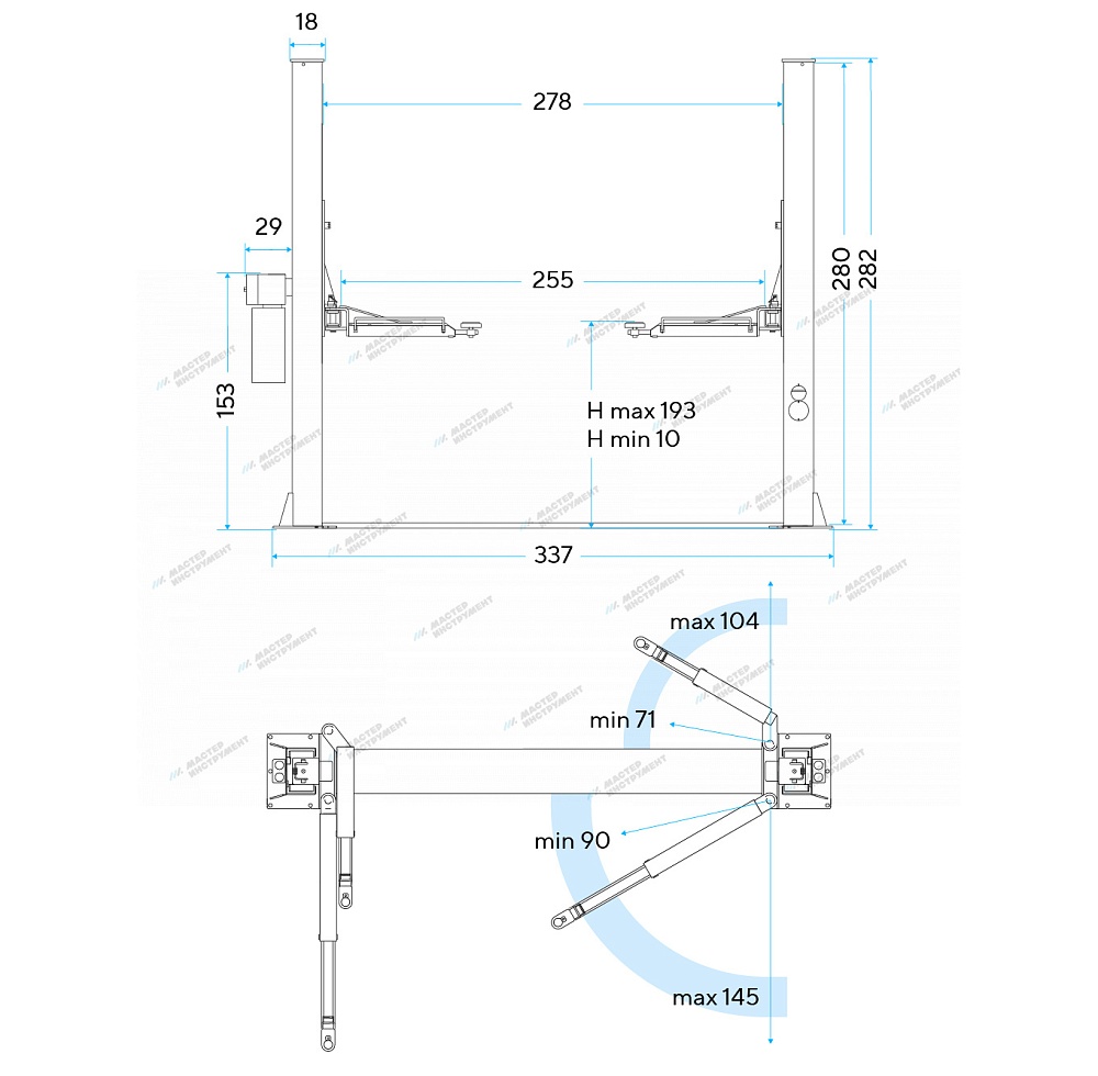 Подъемник двухстоечный 4 т с нижней синхронизацией, H=2,8 м, 220 В, синий . STX40TT_220 купить в Нижнем Новгороде цена ✅ - Все для СТО