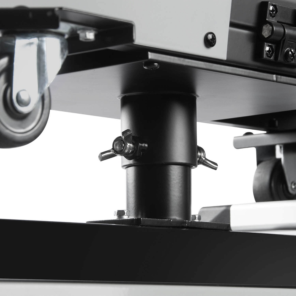 Оборудование поставляется в комплекте с тележкой для перемещения аппарата, подающего механизма, блока жидкостного охлаждения и баллона с защитным газом. Тележка обладает надежной усиленной конструкцией, где толщина металла около 3 мм.