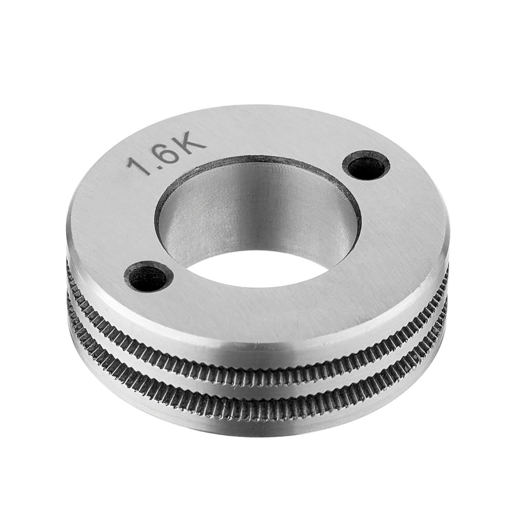 Ролик подающего механизма для сварочных полуавтоматов ПТК RILON MIG 500 DP TITAN, ПТК RILON MIG 500 DF. Это сменный элемент подающего механизма, который подбирается в соответствии с видом сварочной проволоки и ее диаметром. Данные ролики предназначены для работы с порошковой проволокой диаметром 1,2–1,6 мм. Размер роликов 37х19х12 мм. Подающие ролики имеют канавки K-образной формы. При изменении сечения проволоки необходимо перевернуть ролик нужной стороной и использовать его далее.