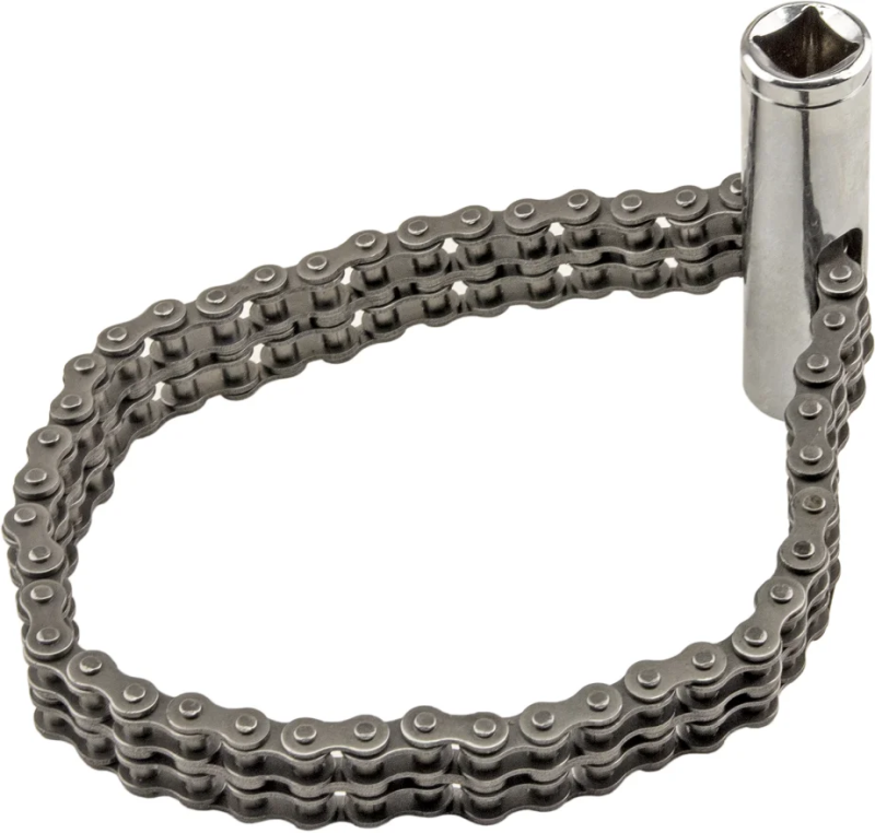- Цепной съемник с длиной цепи 410 мм и приводом 1/2" для обслуживания масляных фильтров до 120 мм.