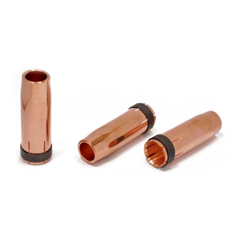 Сопло MIG-MAG - это расходная часть горелки, которая отвечает за формирование струи защитного газа в процессе полуавтоматической сварки. В процессе работы сварочные брызги налипают на сопло, а продолжительные работы на максимальных токах выжигают сопло изнутри. Поэтому деталь приходится периодически менять. Для того, чтобы продлить жизнь расходнику – сопло необходимо время от времени зачищать.