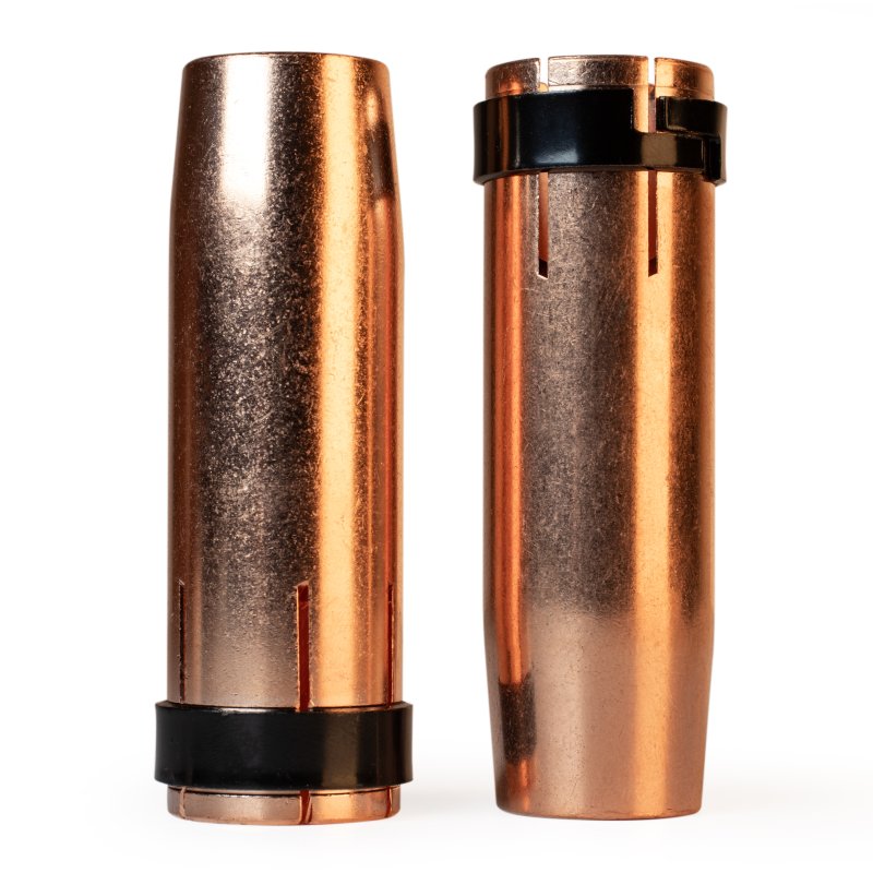 Сопло MIG-MAG - это расходная часть горелки, которая отвечает за формирование струи защитного газа в процессе полуавтоматической сварки. В процессе работы сварочные брызги налипают на сопло, а продолжительные работы на максимальных токах выжигают сопло изнутри. Поэтому деталь приходится периодически менять. Для того, чтобы продлить жизнь расходнику – сопло необходимо время от времени зачищать.