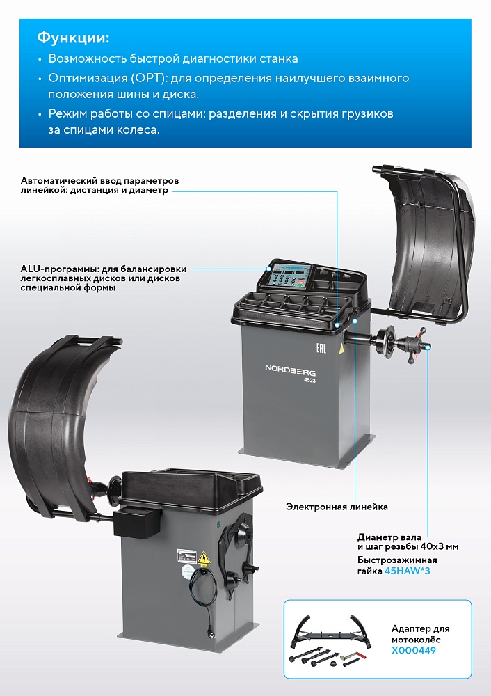 Станок балансировочный с автоматическим вводом двух параметров, серый NORDBERG 4523(G) купить в Нижнем Новгороде цена ✅ - Все для СТО