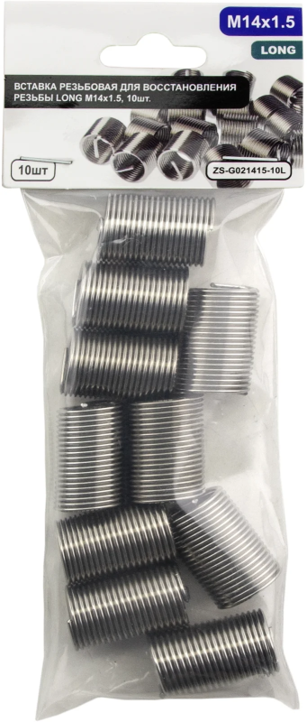 Вставка резьбовая для восстановления резьбы LONG M14 х 1.5, 10 штук, ZIPMEND, ZS-G021415-10L.