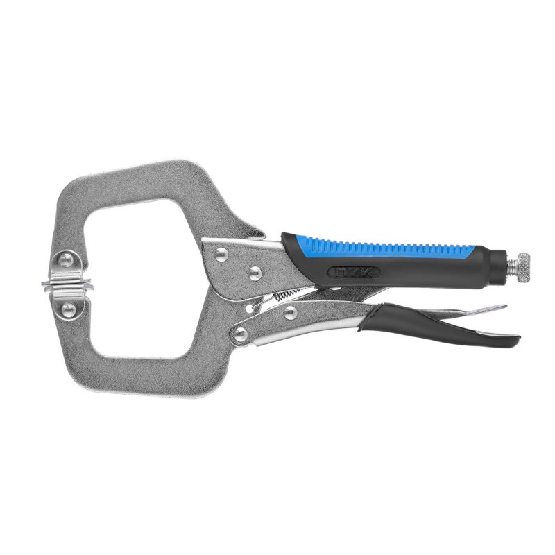 Ручной зажим с фиксатором РЗФ-11,0 (Тип С) предназначен для удержания и фиксации детали перед выполнением сварочных и слесарных работ или перед обработкой и зачисткой. Максимальная глубина зажима 80 мм.