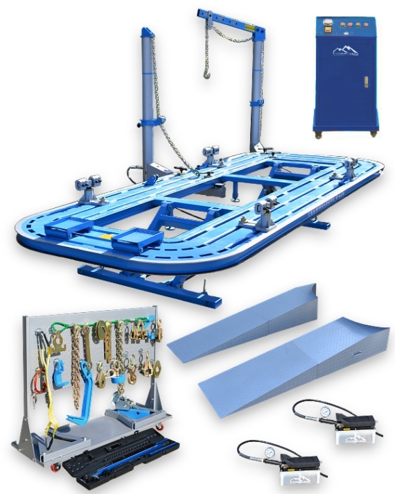 Платформенный стапель* с полным гидравлическим подъемником для восстановления геометрии кузова автомобилей, имеющих повреждения любой сложности.