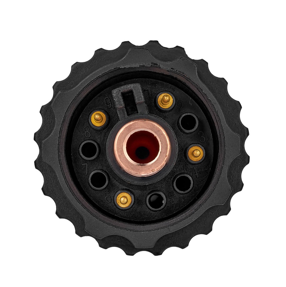 Резак плазменный CP 141 оснащен стандартным евроразъемом подключения, с предустановленными 4PIN коннекторами. PIN коннекторы установлены в ячейки евроадаптера 9/1/6/3.