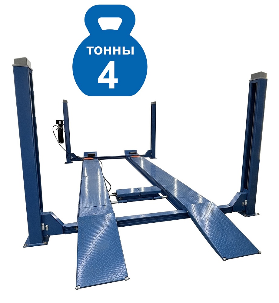 ES4D-4 Подъемник 4-хст. г/п 4т. электрогидравлический с траверсой для сход-развала всех авто от Матиза до длинной Газели и всех внедорожников. Для всех типов стендов сход-развал в т.ч 3D и 3D с прокаткой, между колоннами расстояние 2910 мм. Длина платформ 4850 мм. Подъём 1800 мм. Траверса г/п 2,0 т. и анкерные болты в комплекте. Гарантия 12 месяцев. Доставка по РФ и СНГ.