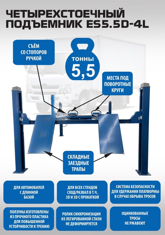 ES5.5D-4L Подъемник 4-хст. г/п 5,5 т, 380 V с траверсой 2,0 т купить в Нижнем Новгороде цена ✅ - Все для СТО