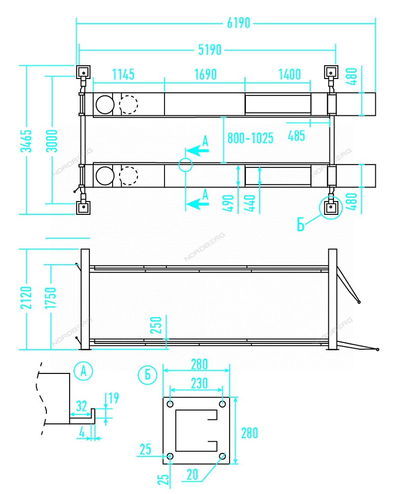 - Регулируемое расстояние между платформами — 800, 900 или 1025 мм, что обеспечивает универсальность и позволяет точно подстроить подъёмник под различные типы автомобилей, от седанов до лёгких грузовиков;