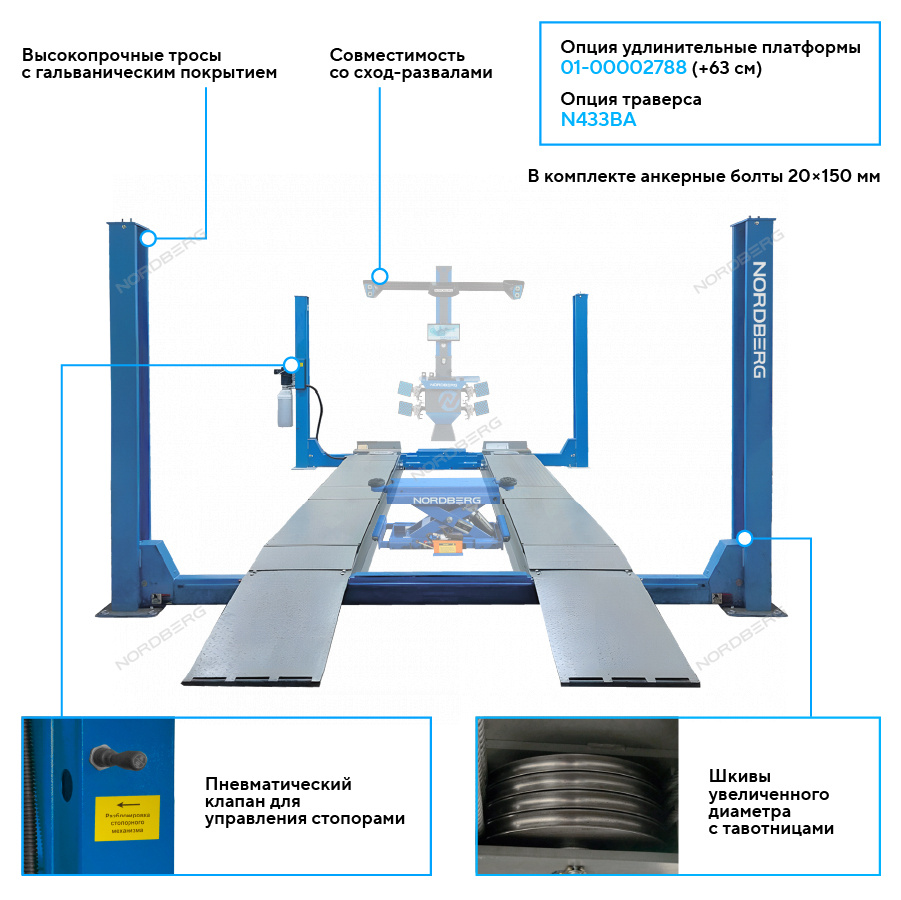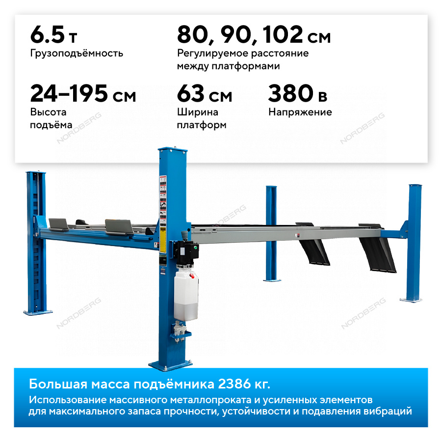 Подъемник четырехстоечный 6,5 т, для сход-развала, синий NORDBERG 4465B_N433BA