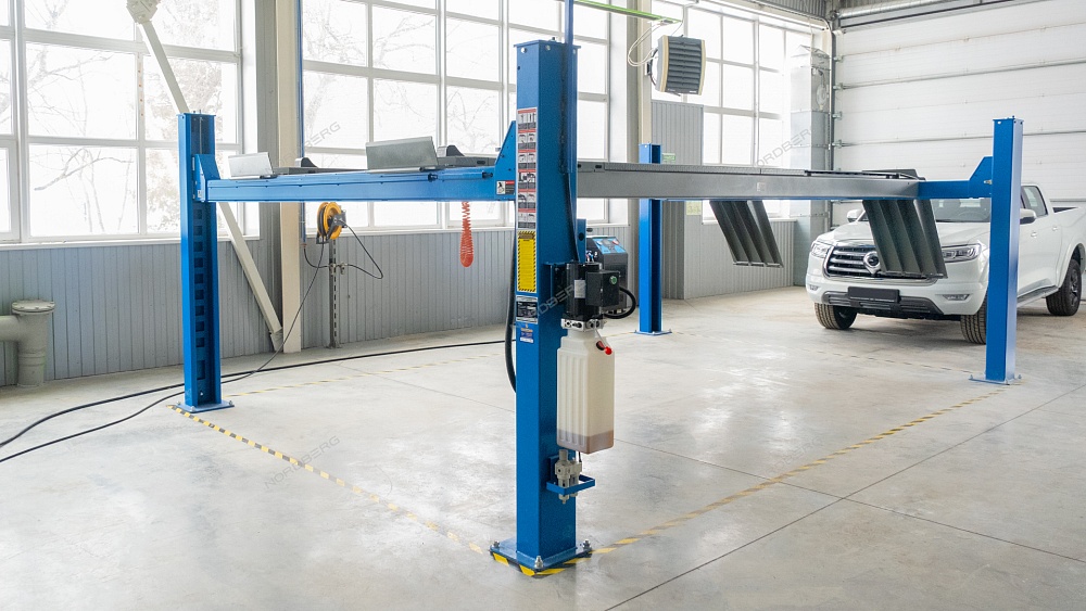 - Ключевое преимущество — большая масса подъёмника 2386 кг благодаря использованию массивного металлопроката и усиленных элементов. Это обеспечивает максимальный запас прочности, устойчивость и эффективное подавление вибраций даже при работе с тяжёлыми автомобилями;