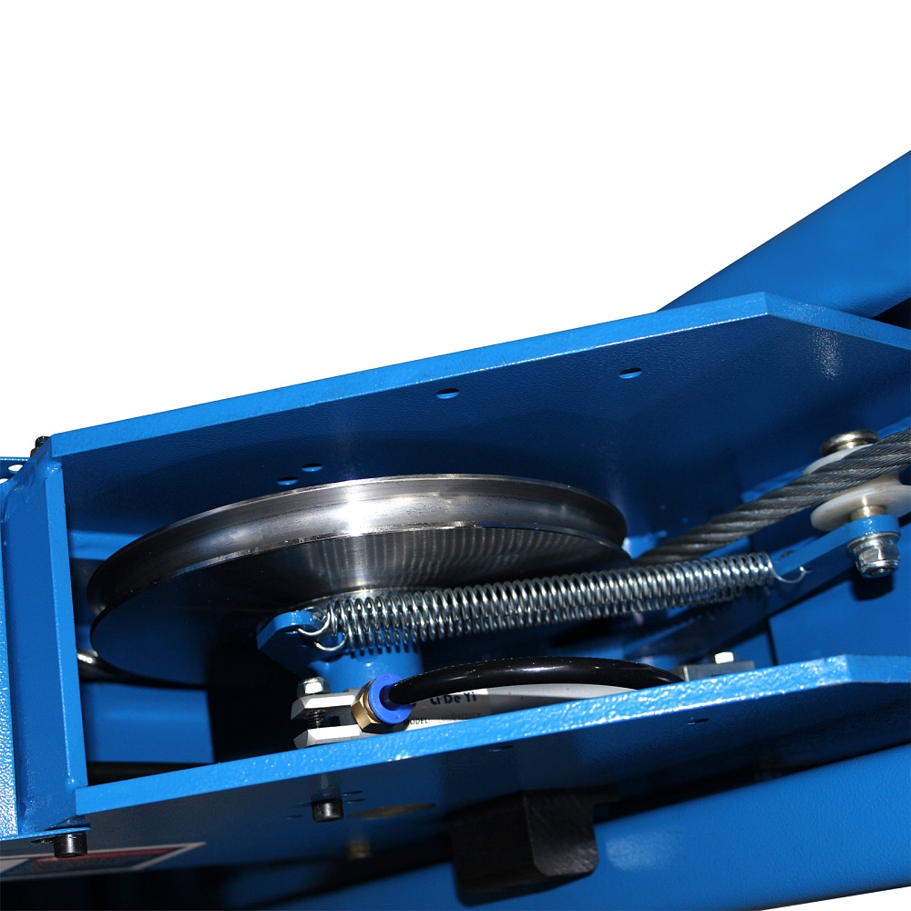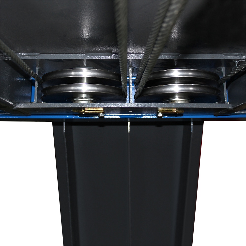 Модель приводится в действие мощным электрогидравлическим приводом и системой тросов. Высота подъема до 1 850 мм, длина платформы – 4 990 мм. В комплекте  набор скользящих панелей для задних колес, подъемная траверса и пульт управления устройством.