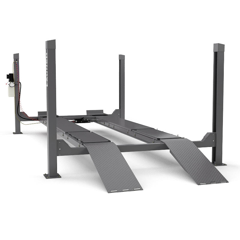 Электрогидравлический платформенный 4-х стоечный автомобильный подъёмник для автосервиса.