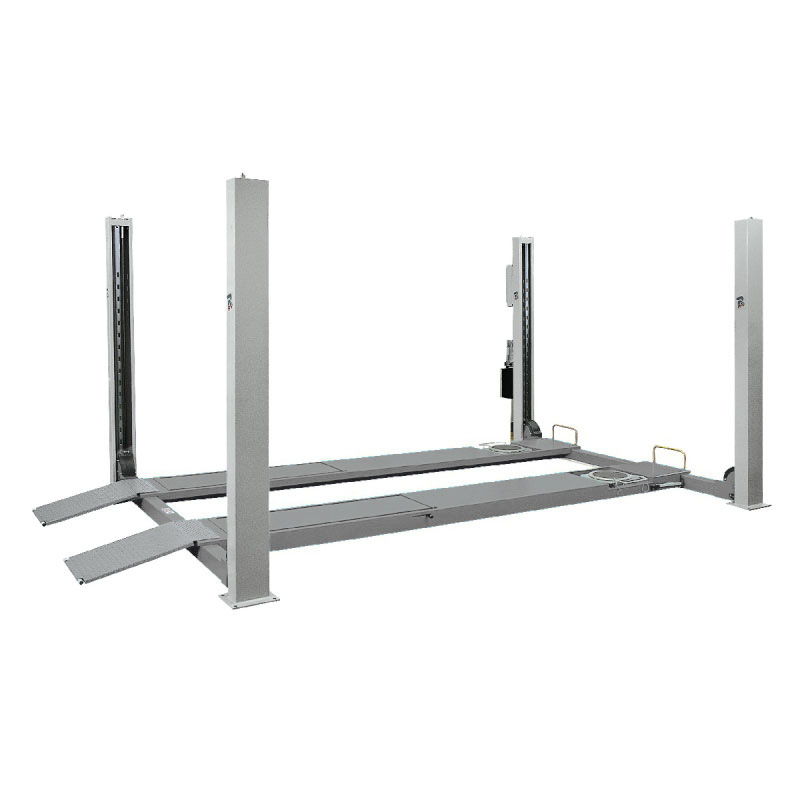 Удлиненный электрогидравлический четырехстоечный подъёмник грузоподъемностью 6,5 т для обслуживания легкового и коммерческого транспорта Оснащение подъемника дает возможность производить регулировку развал/схождения, ремонт тормозной и рулевой систем, и другие работы