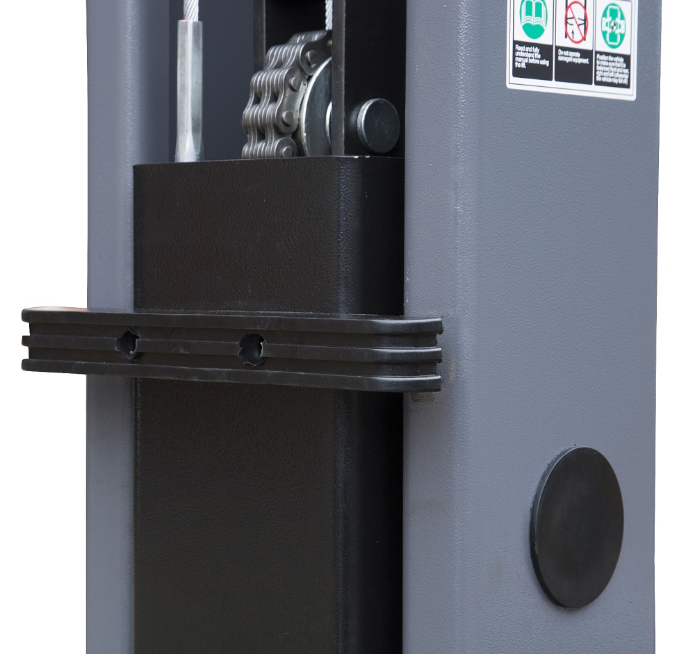 Двухстоечный электрогидравлический подъемник с верхней синхронизацией KRAFTWELL CORSO 2B/220 грузоподъемностью 4000 кг предназначен для подъема легковых автомобилей, внедорожников и легкого коммерческого транспорта с короткой колесной базой. За подъем автомобиля отвечают два гидравлических цилиндра с цепным приводом каретки. Такой тип привода уменьшает нагрузку на гидроцилиндры и обеспечивает долговечность их работы. Внутри колонн расположены каретки с поворотными лапами асимметричной конструкции, применяемые на подъемниках для американского рынка. Каретки снабжены нейлоновыми ползунами, обеспечивающими плавное перемещение внутри стоек. Простая и, в тоже время, надежная система механических стопоров со снятием с двух сторон обеспечивает безопасное удержание автомобиля в поднятом состоянии на протяжении всего времени ремонта. Габаритная высота подъемника составляет 3730 мм и позволяет устанавливать его в помещениях с высотой потолка от 4-х метров и выше.