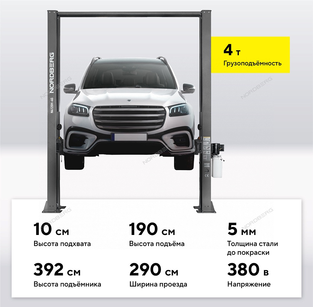 Подъемник двухстоечный 4 т, верхняя синхронизация, H=3,6 м, 220 В, серый NORDBERG N4120H-4G_3+2_220 купить в Нижнем Новгороде цена ✅ - Все для СТО