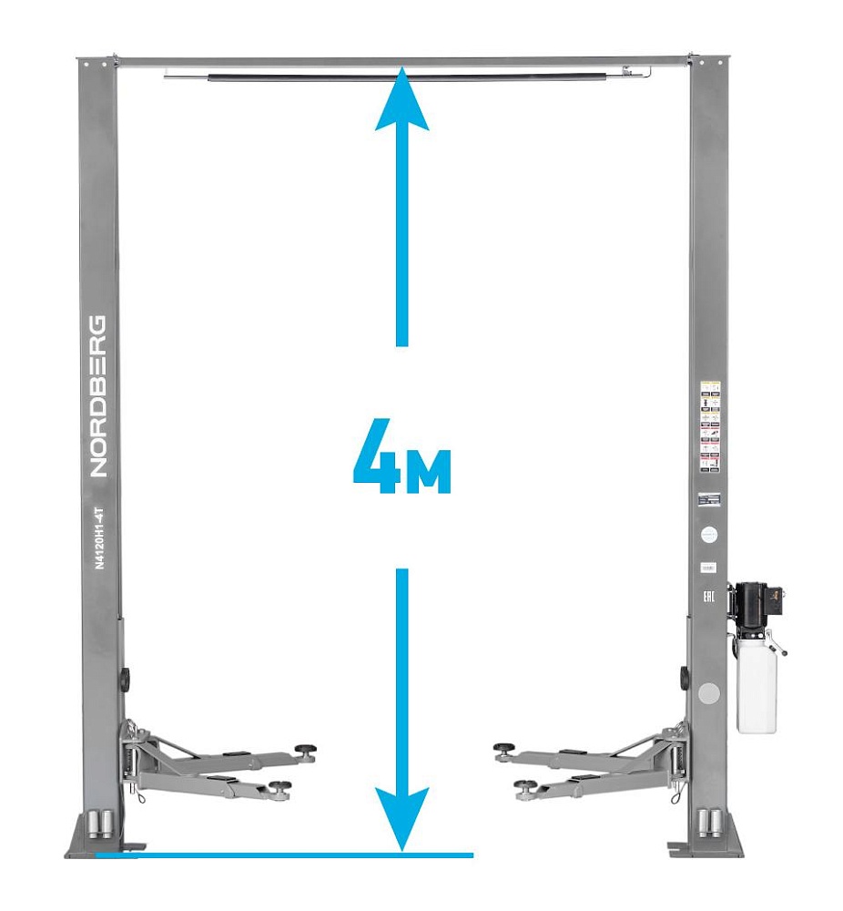 Подъемник двухстоечный 4 т, верхняя синхронизация, H=4 м, 380 В, серый NORDBERG N4120H1-4G_3+2_380 купить в Нижнем Новгороде цена ✅ - Все для СТО