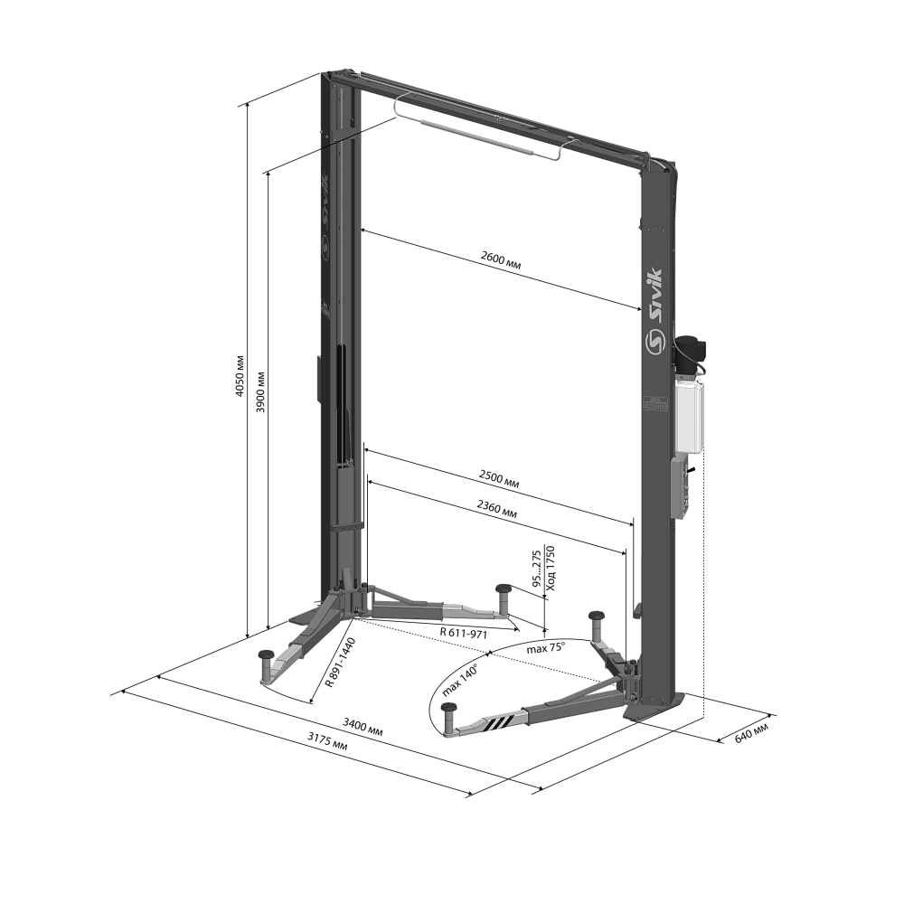 Подъемник двухстоечный Sivik ПГА-4200 серый