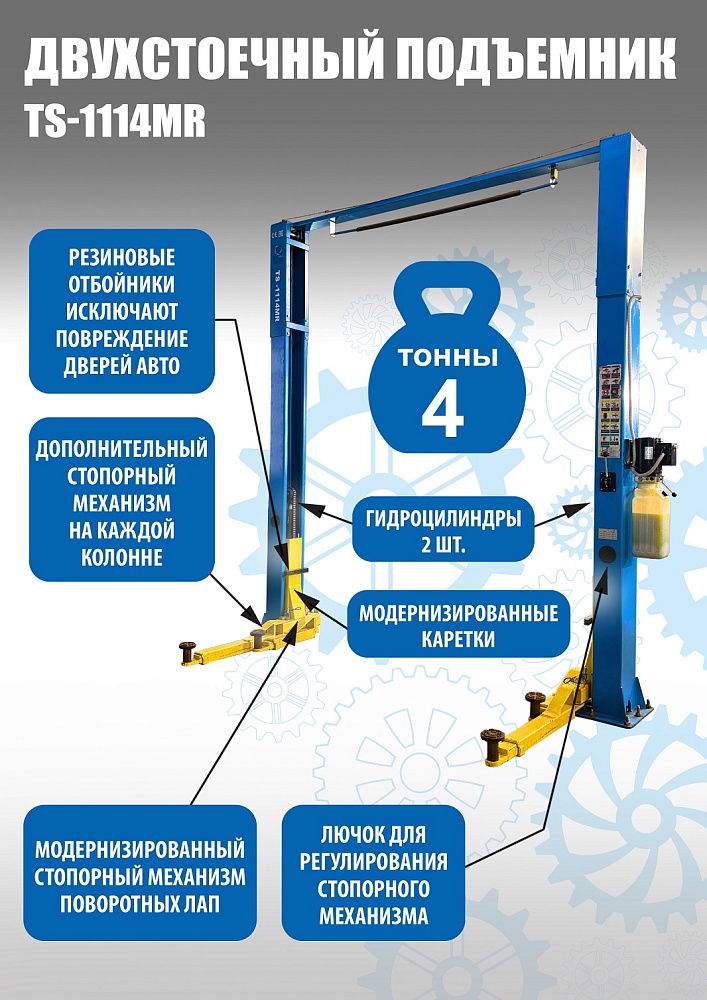 TS-1114MR подъемник 4 т, 2-х ст. электрогидравлический (2025) (380 V ТВ) купить в Нижнем Новгороде цена ✅ - Все для СТО