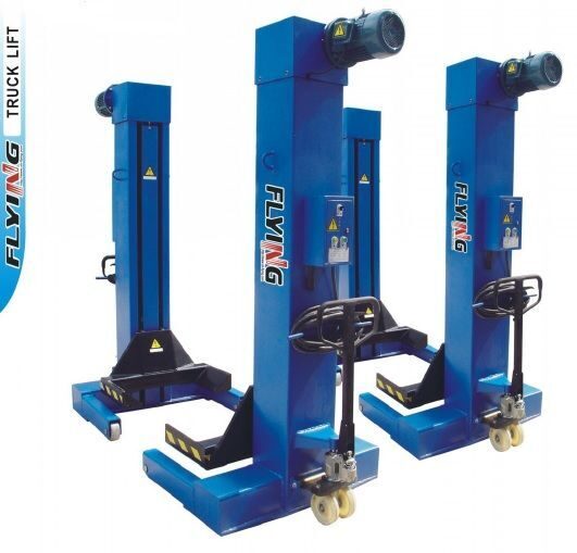 Колонны подкатные, электрогидравлические, грузоподъемность 34 000 кг. Четыре мобильные стойки г/п 8500 кг каждая. Беспроводные.