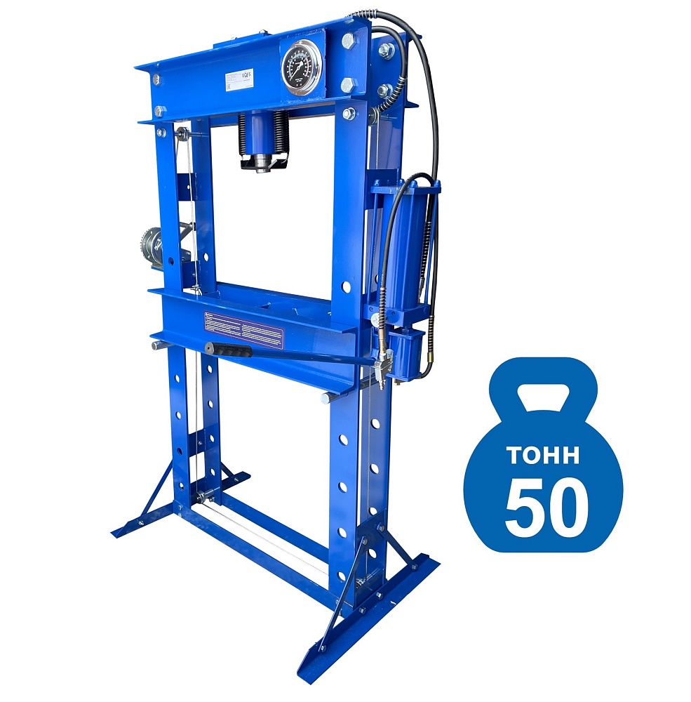 · Пресс укомплектован гидравлическим ручным насосом и пневмогидравлическим с максимальным усилием 50 тонн.