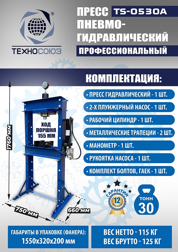 TS-0530A Пресс гидравлический, 30 тонн купить в Нижнем Новгороде цена ✅ - Все для СТО