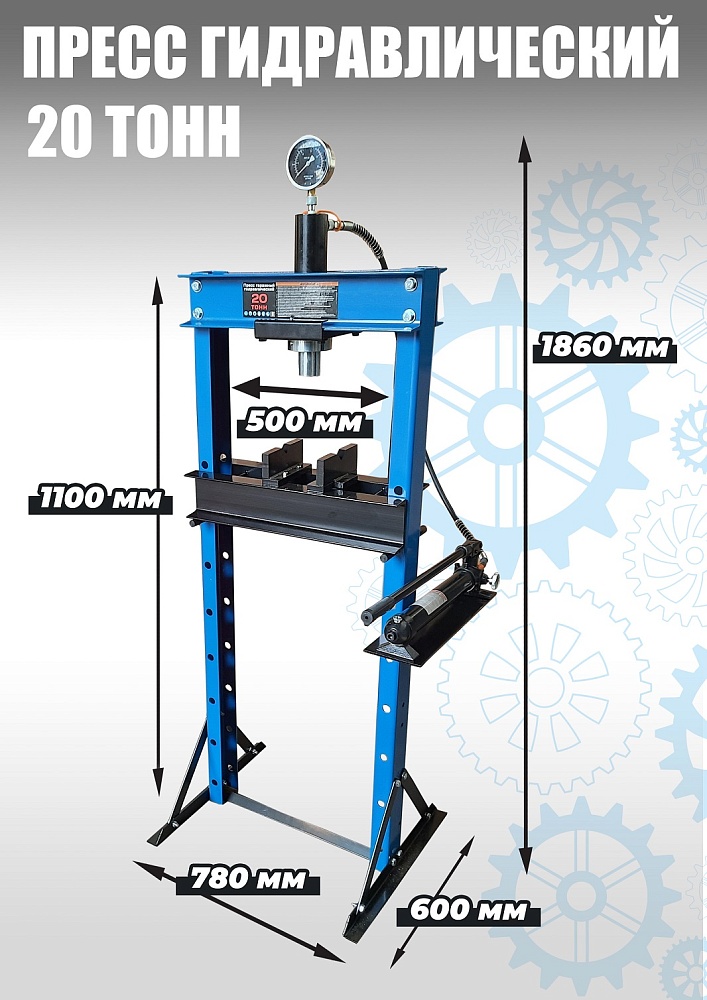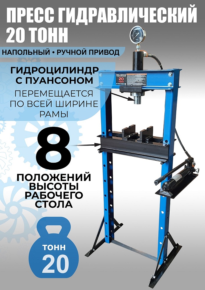 ·         Пресс укомплектован гидравлическим ручным насосом с максимальным  усилием 20т.
