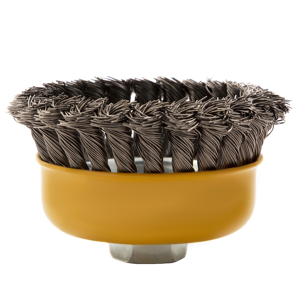 Щетка для УШМ, 100 мм, "Чашка", крученая нержавеющая проволока 0.5 мм, М14 Denzel купить в Нижнем Новгороде цена ✅ - Все для СТО