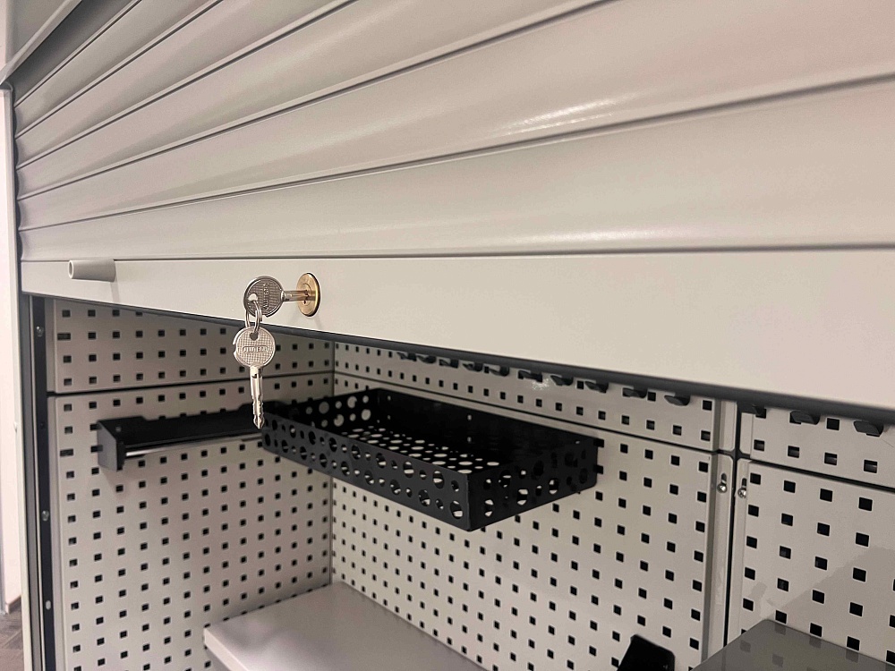 Металлический шкаф для паркинга с односекционным роллетным модулем. Сборно-разборная конструкция.