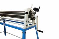 Ручные вальцы Metal Master MSR 1308 (1,30 м) применяются для изготовления цилиндрических и конусных обечаек, дугообразных элементов, правки плоских заготовок. Оснащены верхним валом с малым диаметром, что позволяет работать с тонкими стальными листами, обладающими значительной упругостью и требующими большей степени деформации для получения изгиба. Вальцы поставляются на сборной ножной опоре. Вы запросто сможете собрать и разобрать станок самостоятельно. Разбочая зона 1300 мм. Толщина металла 0.8 мм. Диаметр валов 60 мм. Минимальный радиус гибки 90 мм. Масса 172 кг
