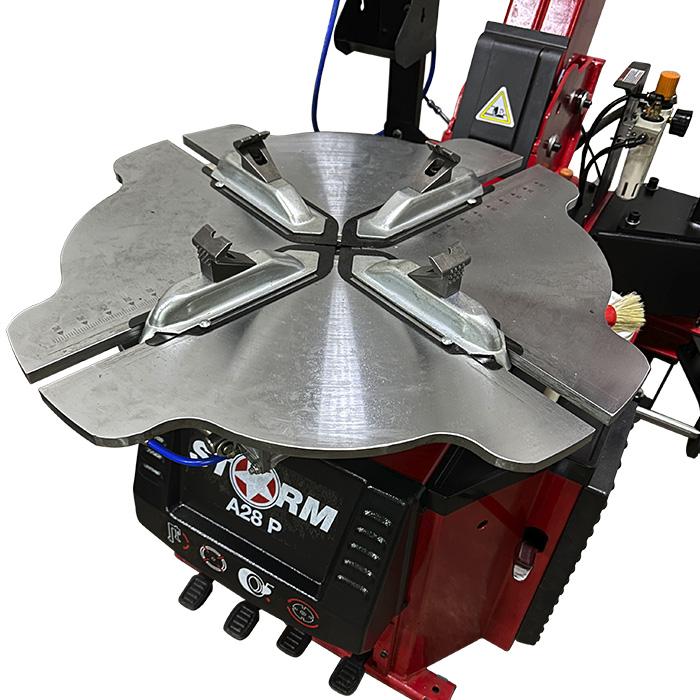 Storm А28 P - автоматический шиномонтажный станок с пневматической фиксацией и встроенной системой быстрой накачки шин. Предназначен для работы с дисками до 28”.Функциональные преимущества стенда A28:- Комплект дооснащения, который включает в себя педаль, раздаточную коробку и манометр "Michelin" (пр-во Италия);- Две скорости вращения монтажного стола (в станках на 380В);- Увеличенная скорость работы отжимной лапы;- В комплекте - пластиковые вставки в монтажную лапу, накладка на отжимную лапу, насадки на зажимные кулачки;- Есть возможность поменять педали местами между собой (кроме управления вращением);- Увеличенная толщина металла корпуса станка - 3,5 мм!- Гарантия на станок 24 месяца.
