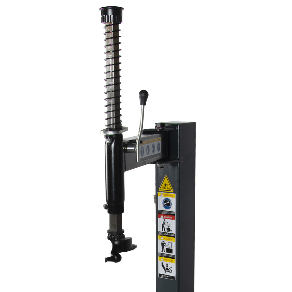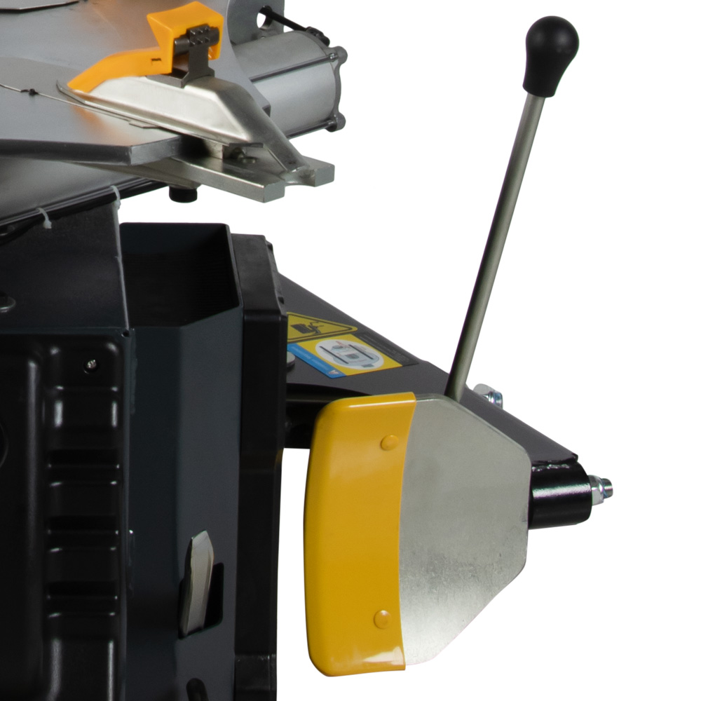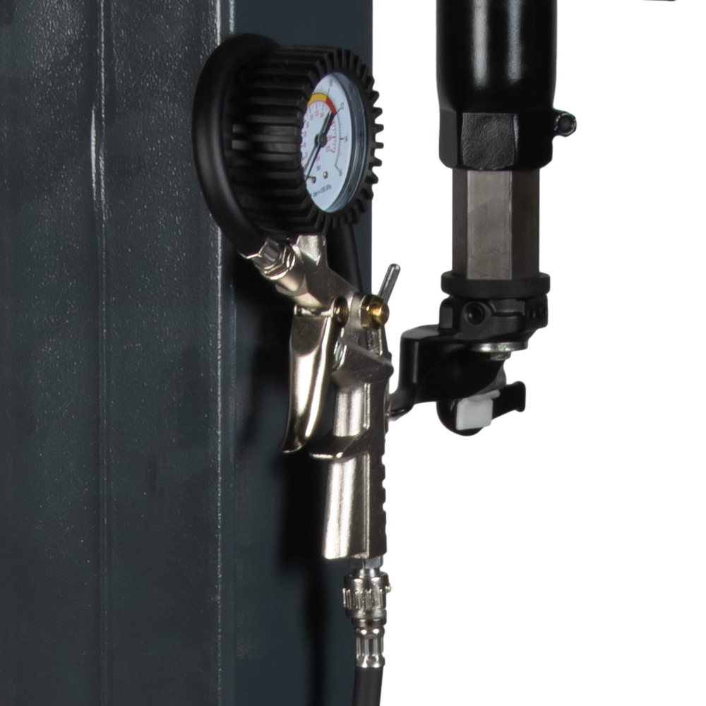 • Благодаря пневматическому цилиндру двухстороннего действия, отжимная лопатка движется в обеих плоскостях без необходимости отводить её вручную, а широкая резиновая накладка обеспечит бережную работу с шинами;