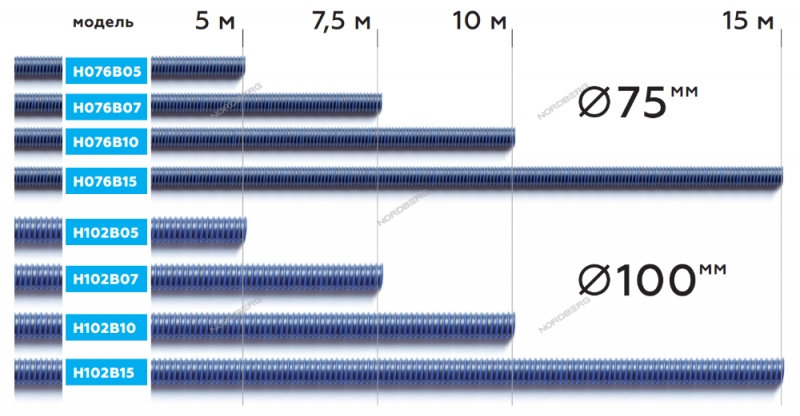 Шланг газоотводный H076B05 D=75 мм, длина 5 м (синий) Nordberg H076B05 купить в Нижнем Новгороде цена ✅ - Все для СТО