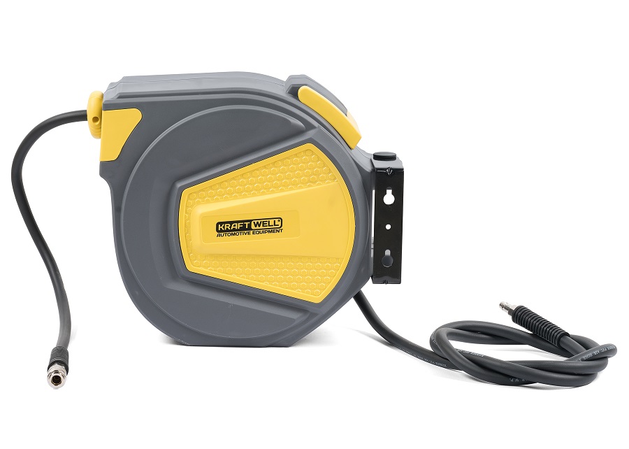Современный дизайн катушки KRAFTWELL KRW1731.С3 изготовленной из ударопрочного пластика с ПВХ шлангом и быстросъемными соединениями на входе и выходе найдет применение в автосервисе или на автомойке для раздачи воздуха или воды.