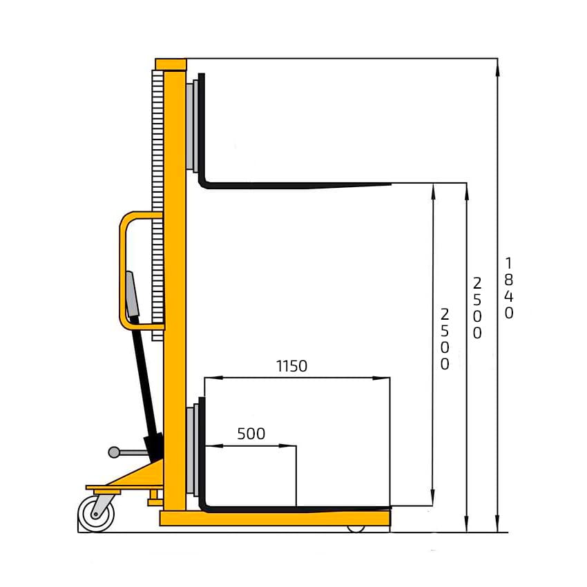 PLH 1000 25 RAKUDA, Ручной гидравлический штабелер, нагрузка 1000 кг., высота подъема 2500 мм, с раздвижными вилами (VILS) купить в Нижнем Новгороде цена ✅ - Все для СТО