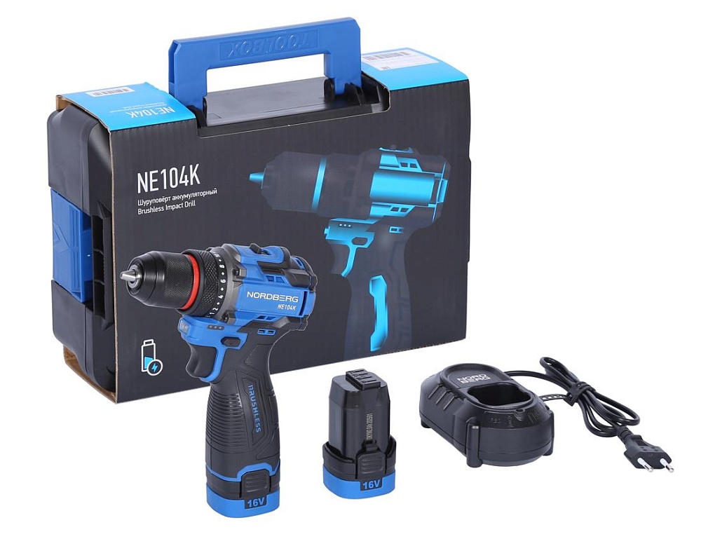 Шуруповерт аккумуляторный макс.диам. сверла 10 мм, 16 В, 60 Нм с 2 аккумуляторами и зарядным уст-вом NORDBERG NE104K купить в Нижнем Новгороде цена ✅ - Все для СТО