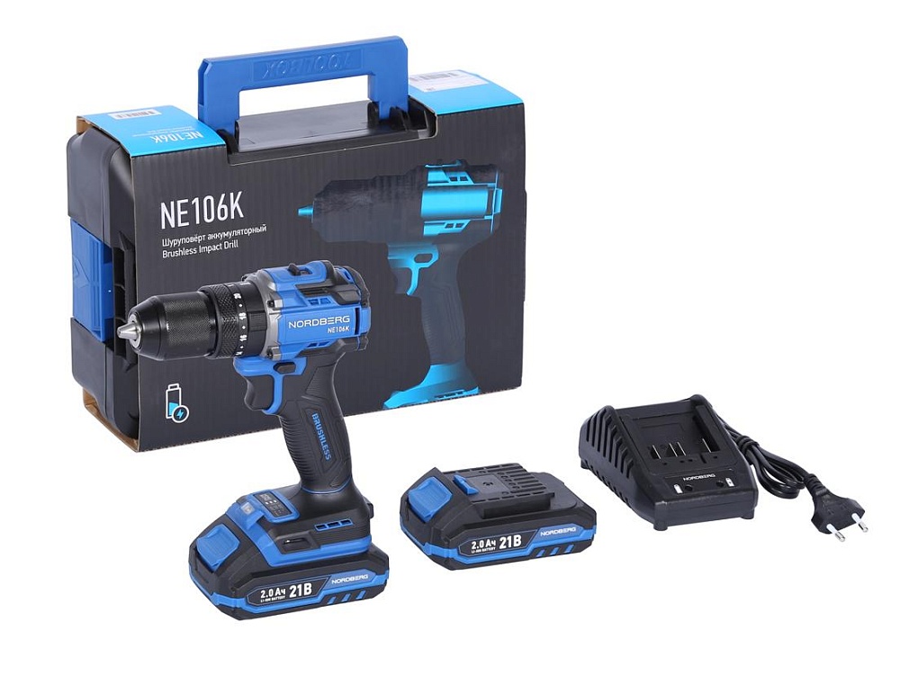 NORDBERG NE106K — аккумуляторный шуруповерт с высоким крутящим моментом. Используется в строительстве, ремонте и профессиональных мастерских.