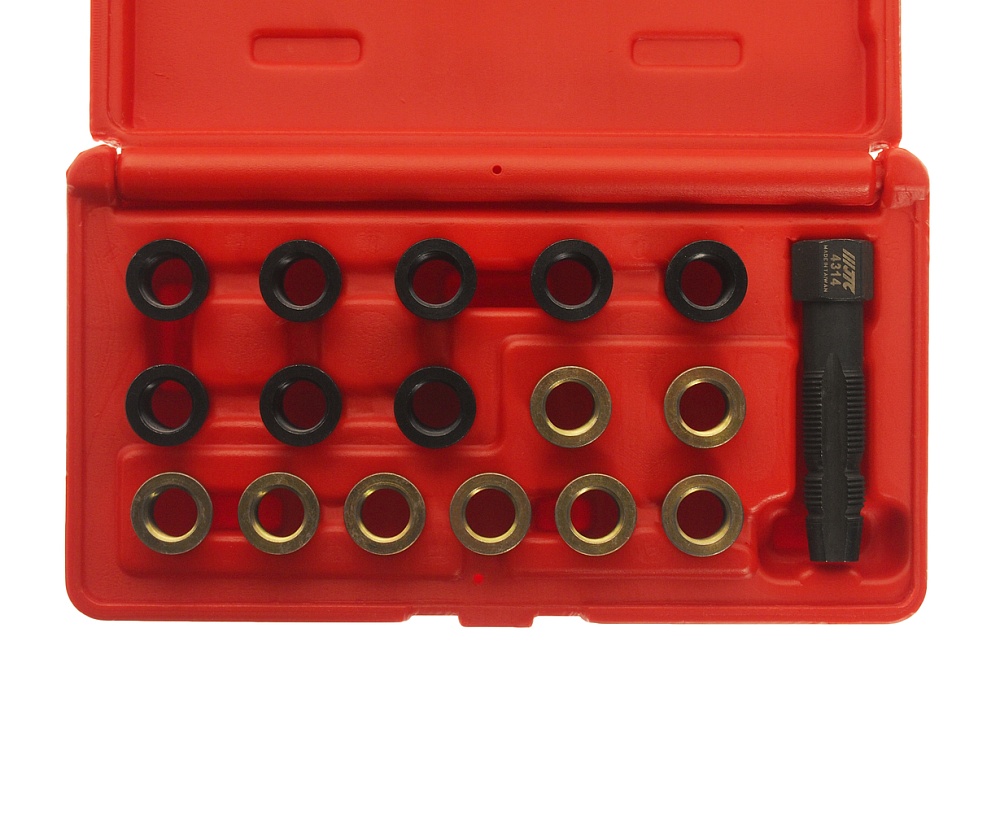 JTC-4314 Набор для восстановления резьбы свечей зажигания (втулки M12x1.25, длина 12.7мм (8шт), 19мм (8шт) JT